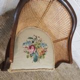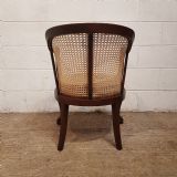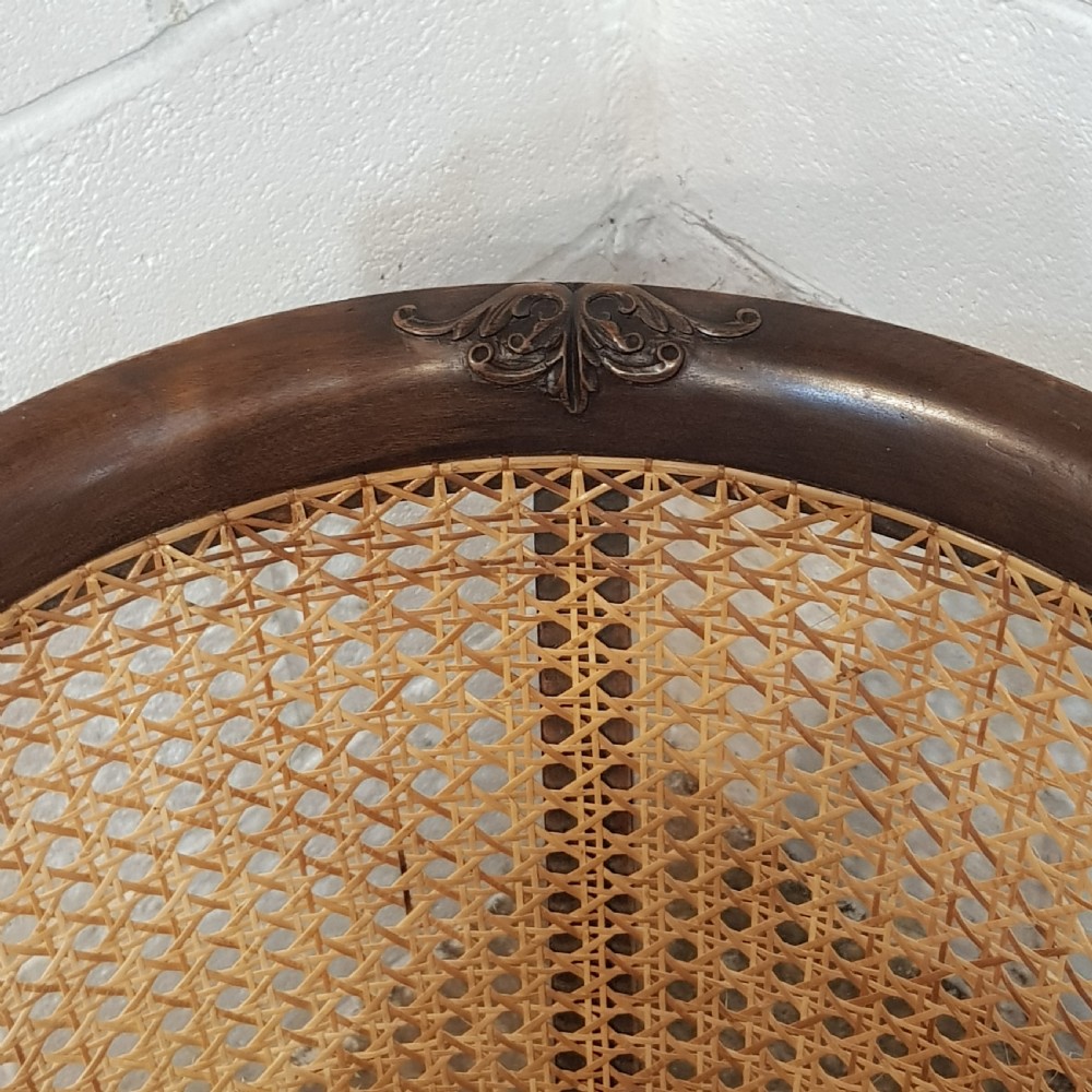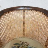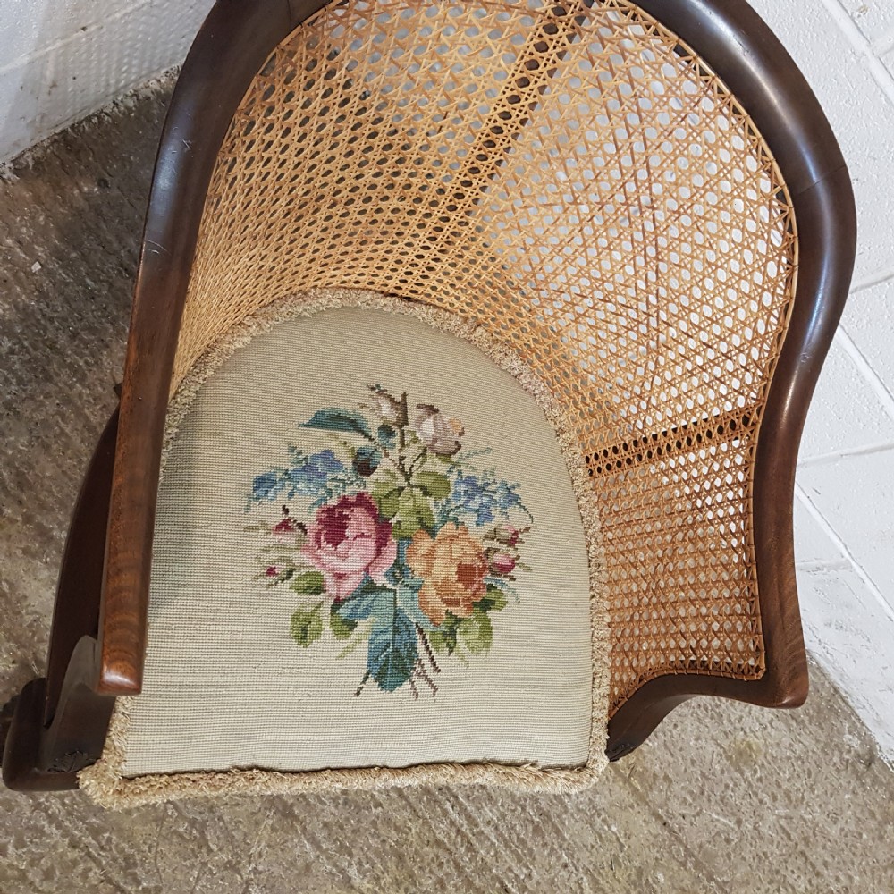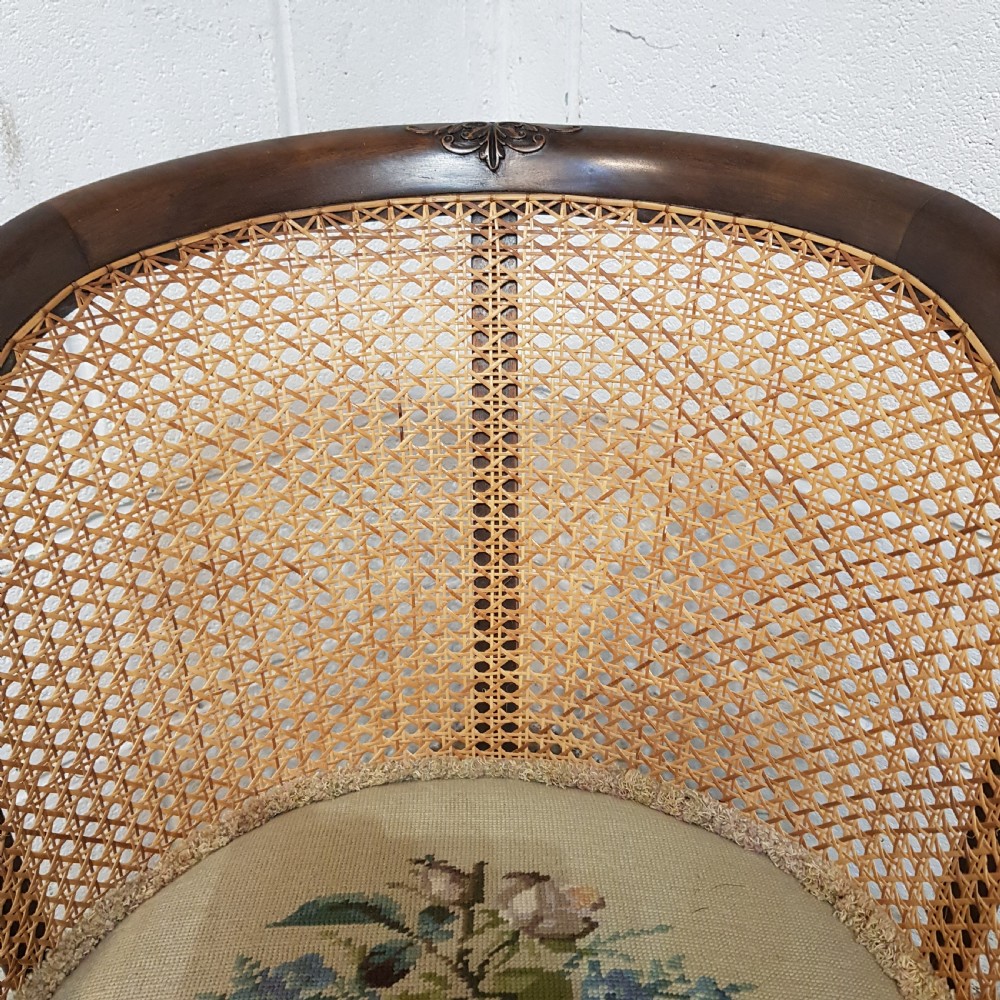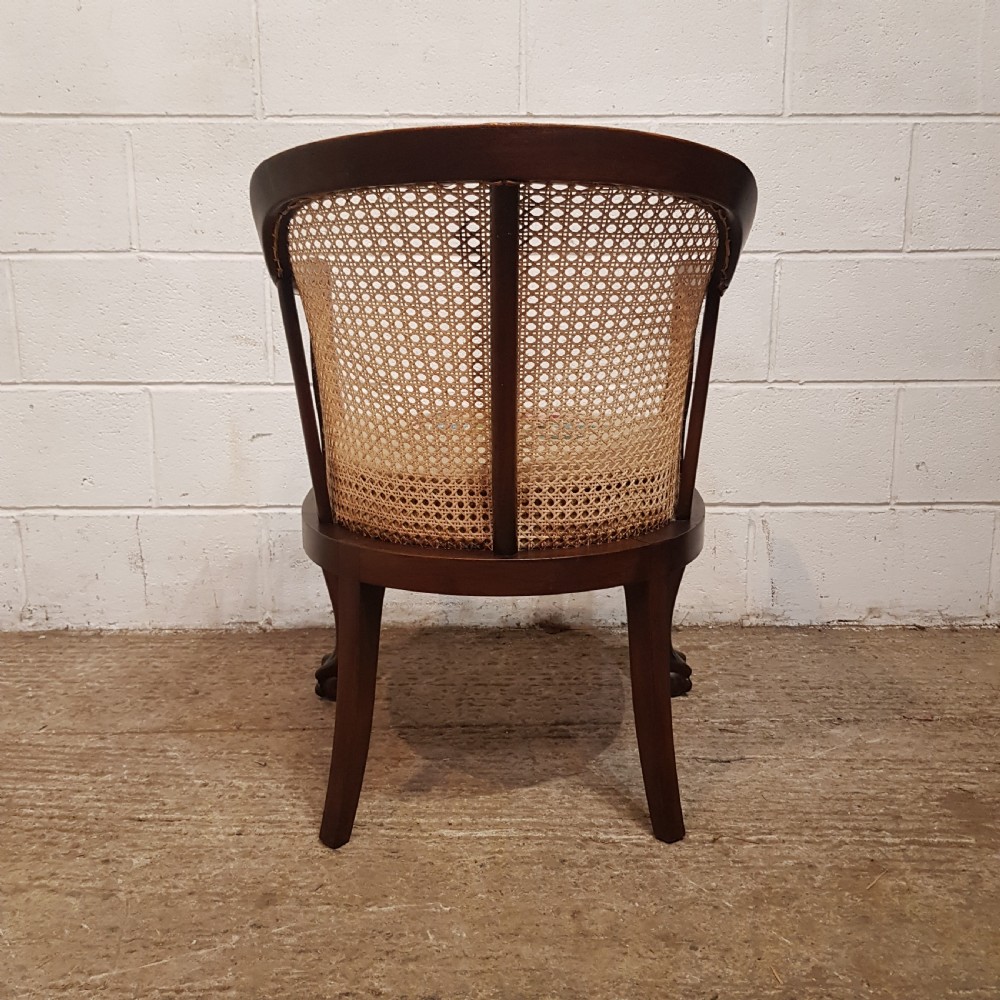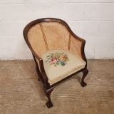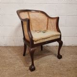 A DENBY & SPINKS MAHOGANY FRAMED BERGERE BACKED TUB CHAIR C1920