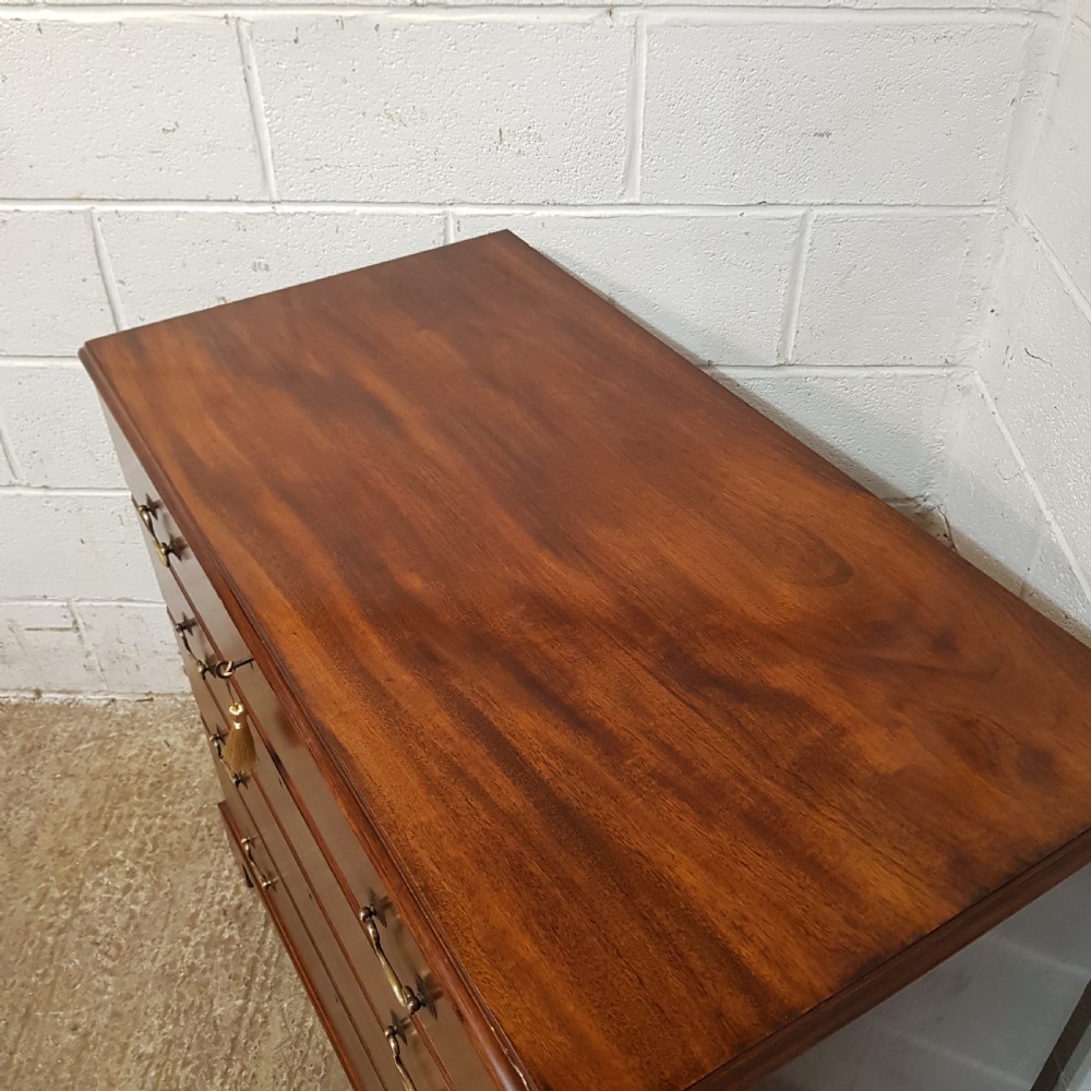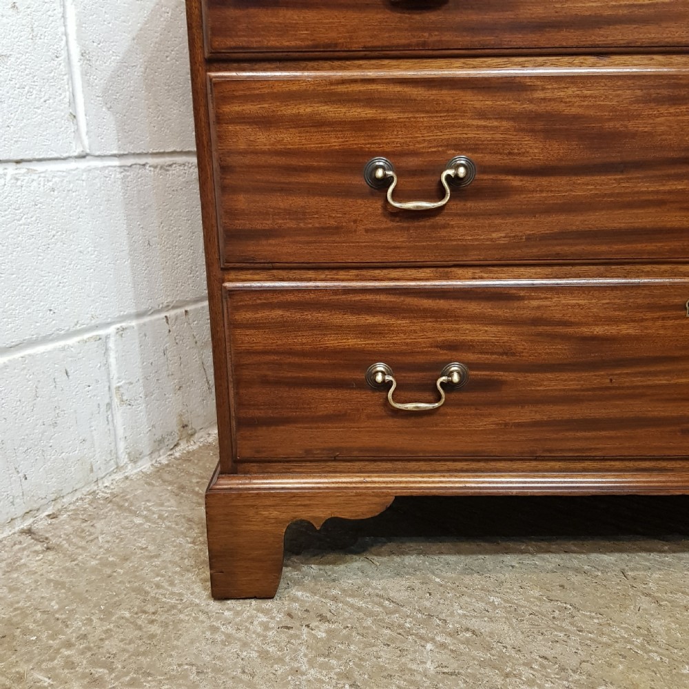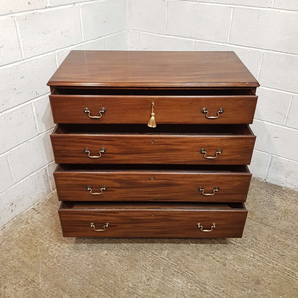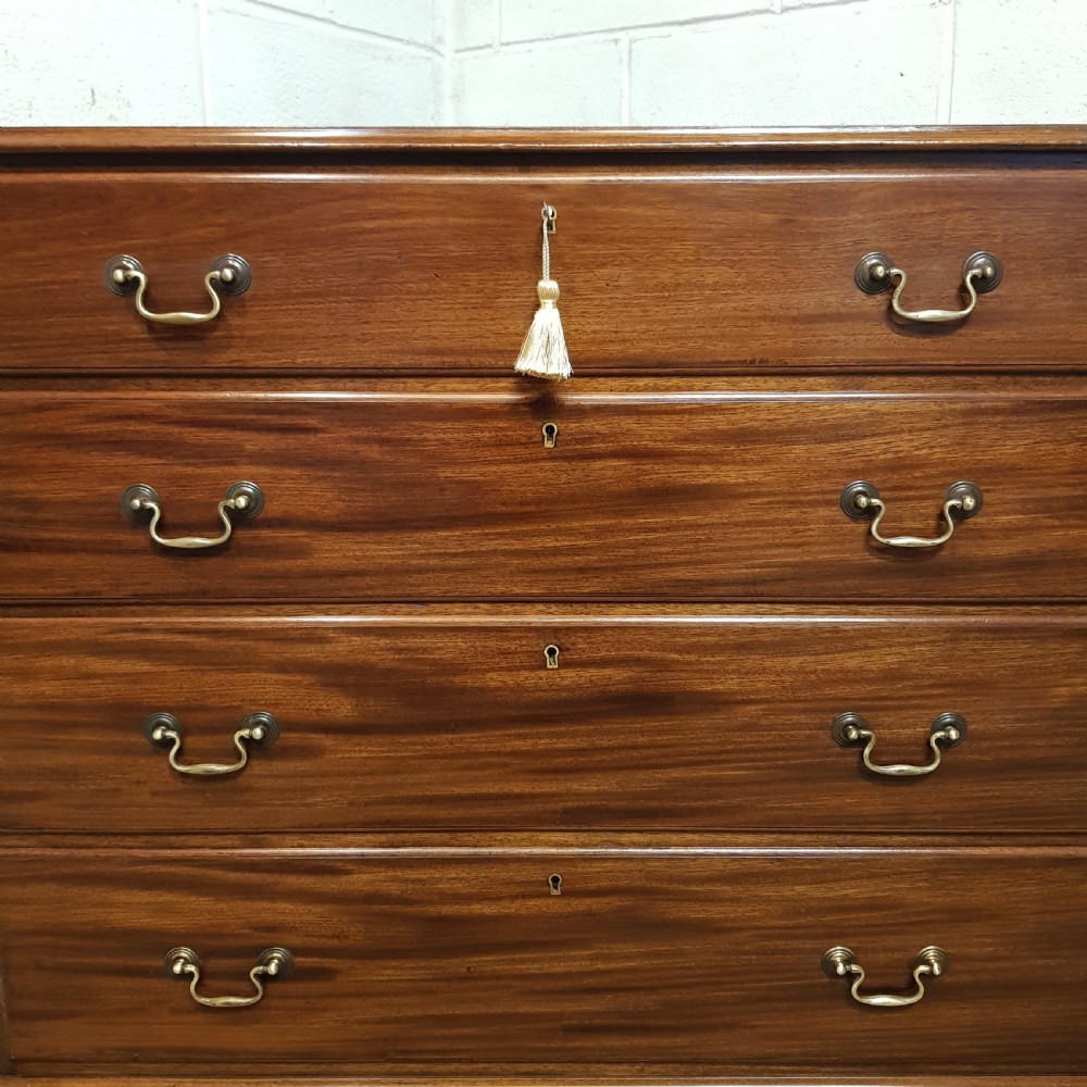 A George 3rd Mahogany four height chest of drawers and dating from around 1800. This stunning Georgian Chest of drawers has a moulded edge to the top. It has four long graduating drawers all of which are Oak lined and with original brass handles and key. It is moulded around the bottom and stands on bracket feet.