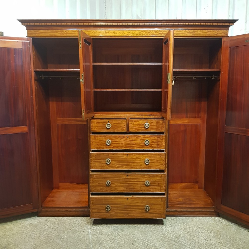 AN EDWARDIAN MAHOGANY TRIPLE WARDROBE BY MAPLES C1900
