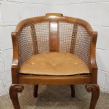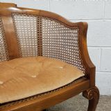 AN EDWARDIAN BERGERE WALNUT FRAMED TUB CHAIR C1900