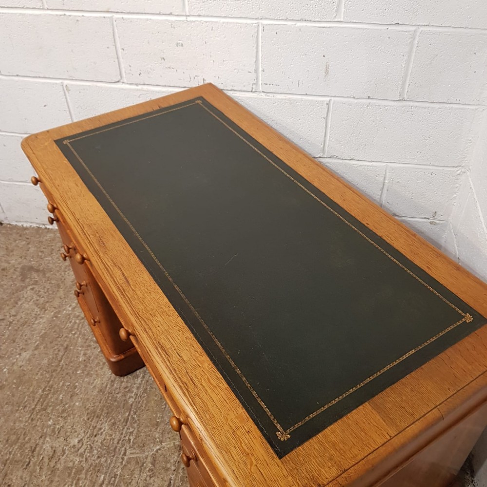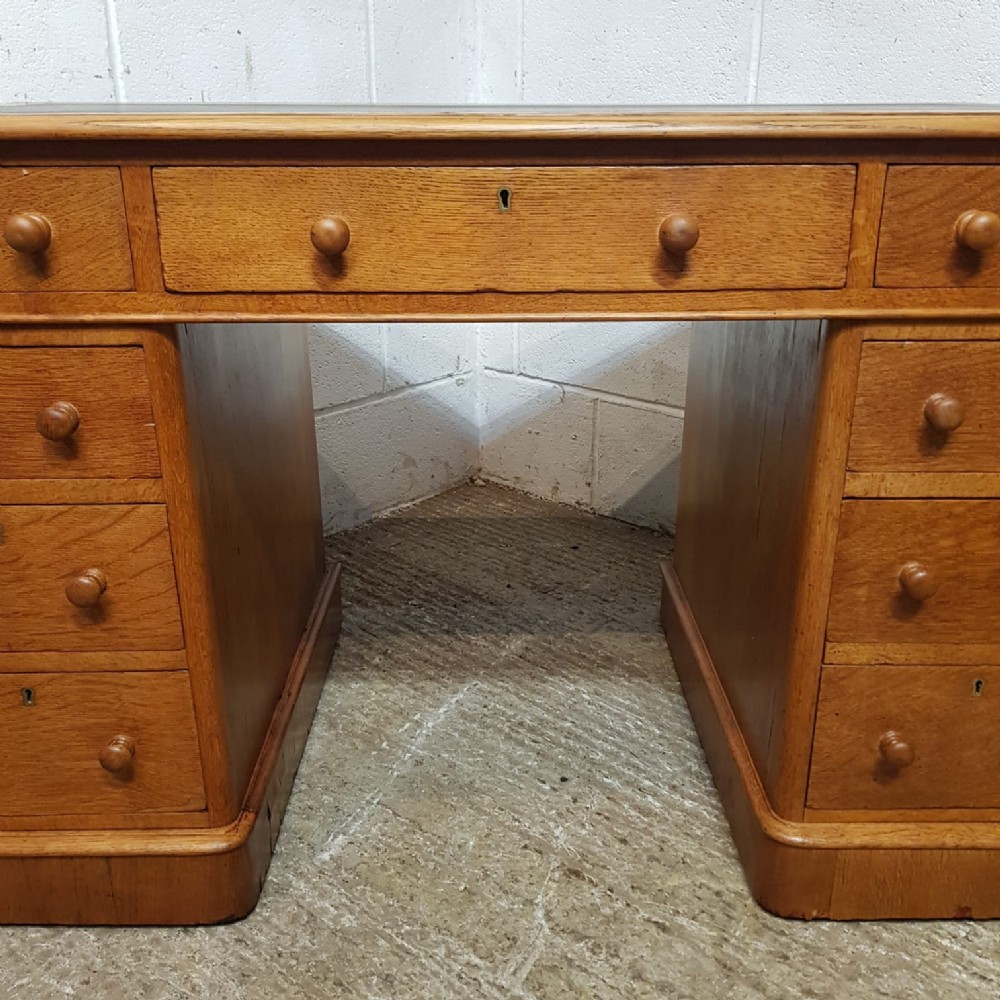 a victorian golden oak twin pedestal writing desk c1880