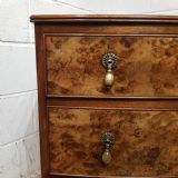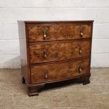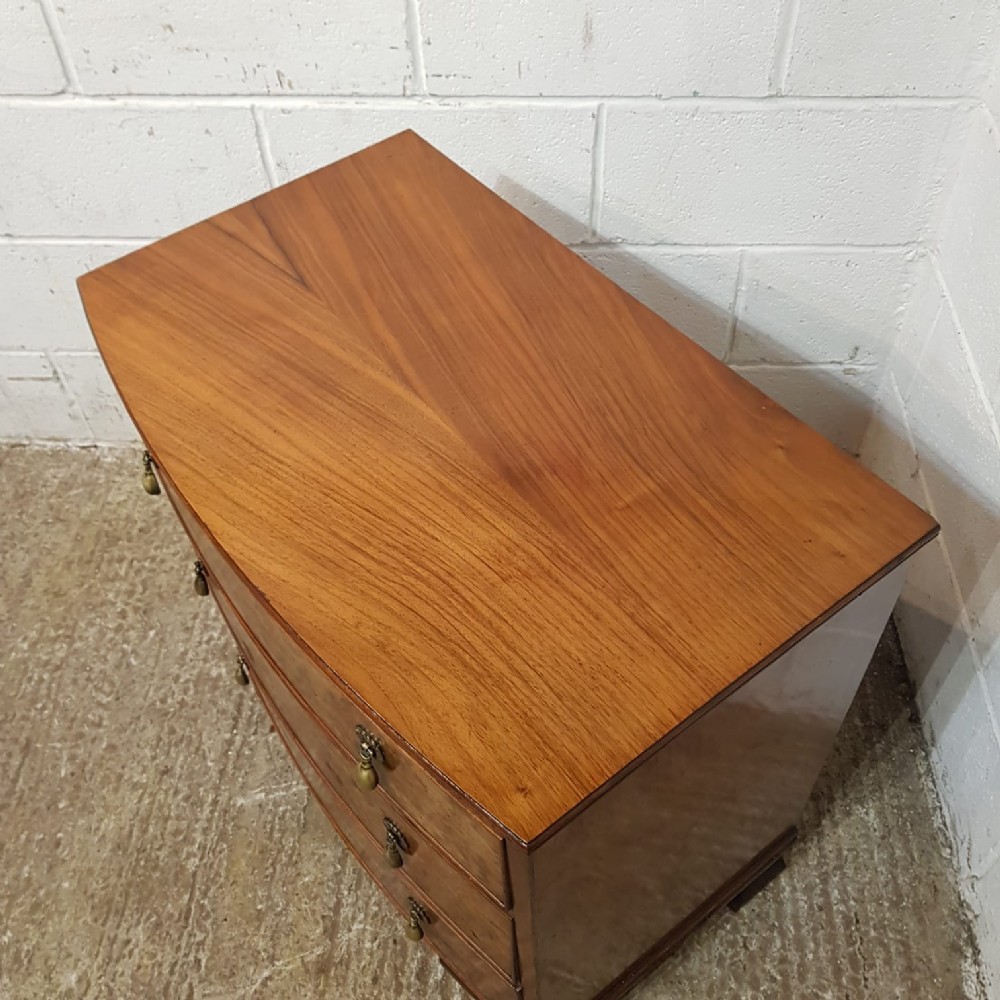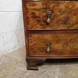 A Walnut Bow fronted 3 height chest and dating from around 1920. This beautiful chest has a moulded edge to the top with three long graduating drawers, which are pine lined with original brass handles. It is moulded around the bottom and stands on bracket feet.