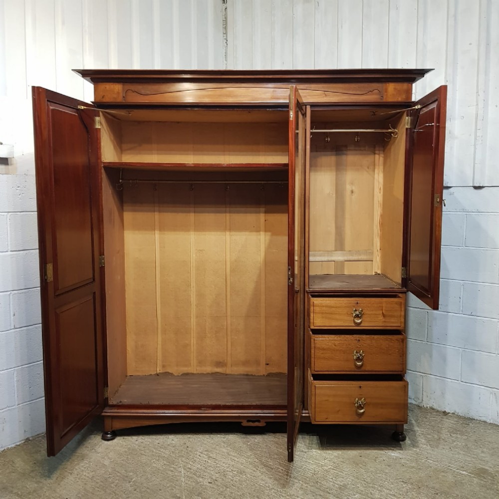 AN ART NOUVEAU MAHOGANY TRIPLE WARDROBE C1900