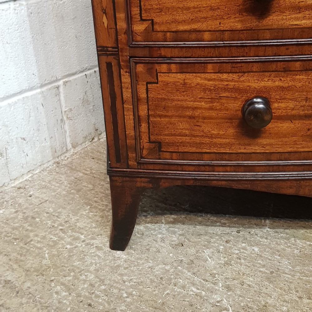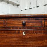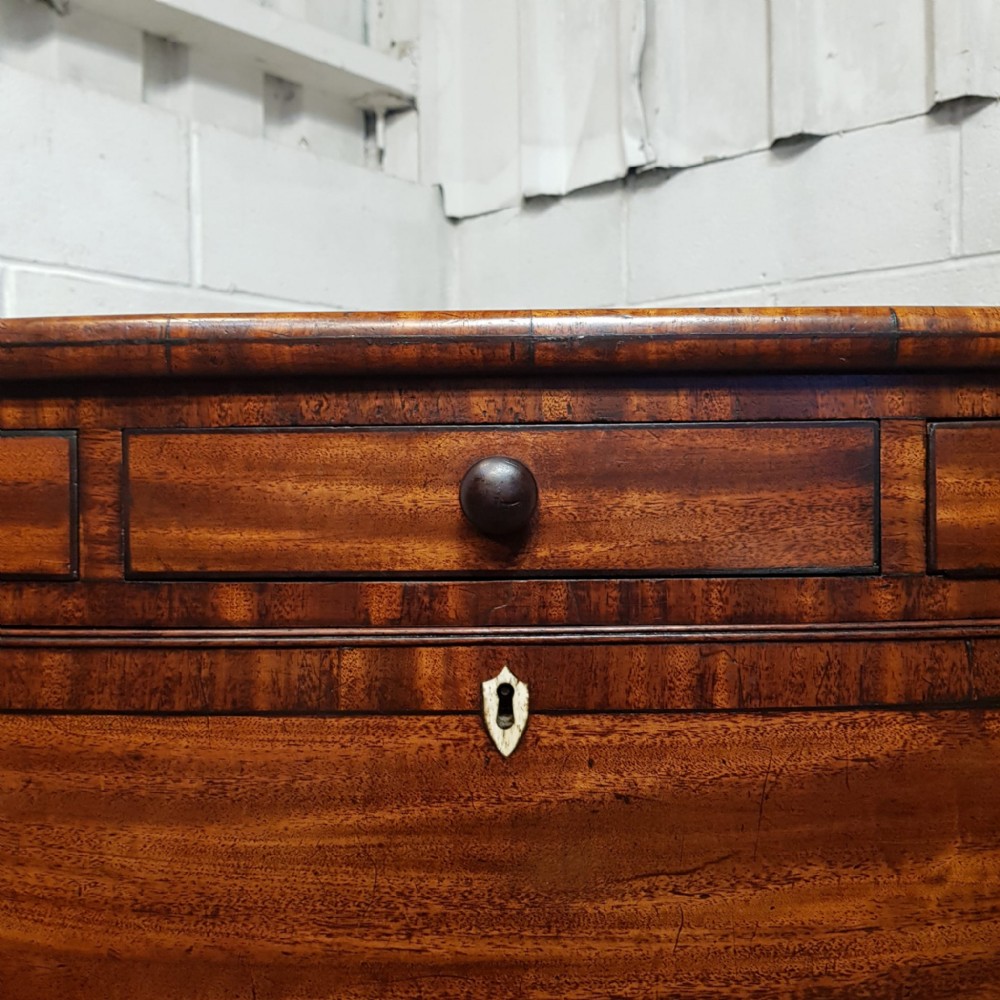 A VICTORIAN BOW FRONTED MAHOGANY WITH EBONY STRING SECRETAIRE CHEST OF DRAWERS C1850