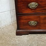 A George 3rd Mahogany tallboy and dating from around 1790. This wonderful piece has a moulded edge to the top followed by two moulded panels each of which has a small carved spandrel to each corner with a slide tray drawer inside. Four long Oak lined drawers follow with original brass handles. It is moulded around the bottom and stands on low bracket feet.