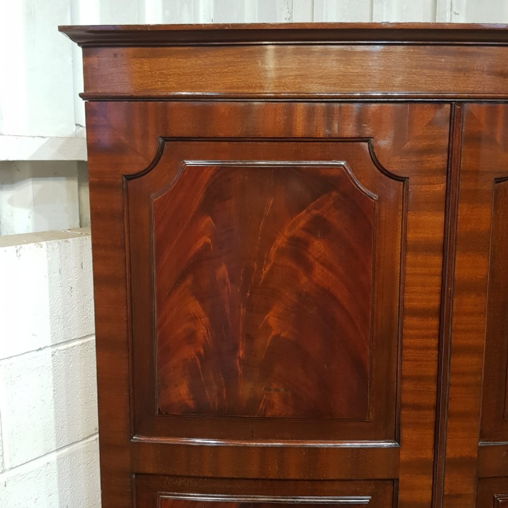 AN EDWARDIAN MAHOGANY BOW FRONTED WARDROBE C1900