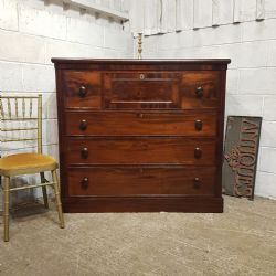 A Mahogany 5 height chest of drawers and dating from around 1920. This chest of drawers has a moulded edge to the top with two short drawers over four long graduating drawers all of which are Mahogany lined with original Brass handles. The chest has canted and readed corners and it is moulded around the bottom on a plinth and on short splayed tapered legs.