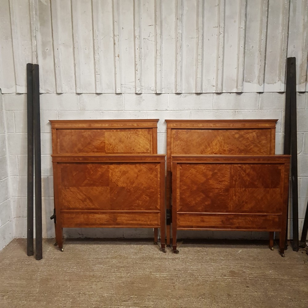 A PAIR OF SATINWOOD SHAPLAND AND PETTER SINGLE BEDS C1890