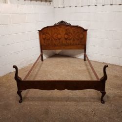 ANTIQUE EDWARDIAN MAHOGANY INLAID PARQUETRY DOUBLE BED C1900