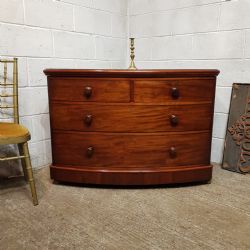 ANTIQUE VICTORIAN MAHOGANY & SATIN BIRCH BOW FRONT CHEST OF DRAWERS C1870