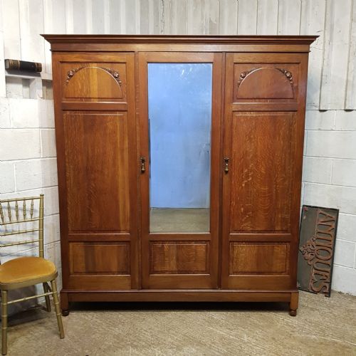 AN OAK ARTS & CRAFTS TRIPLE WARDROBE ...