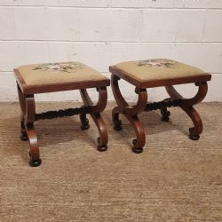 IN VERY GOOD CONDITION BEING SOUND AND SOLID AND VERY COMNFORTABLE TO SIT ON WITH A DEEP COLOUR AND PATINATION TO THE MAHOGANY LEGS AND OOZING THE CHARM AND CHARACTER OF THE PERIOD.
