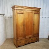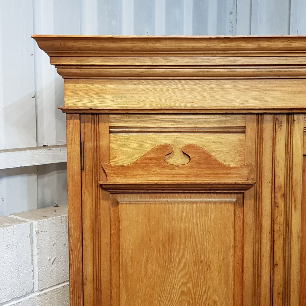 AN ANTIQUE EDWARDIAN ASH DOUBLE WARDROBE C1900