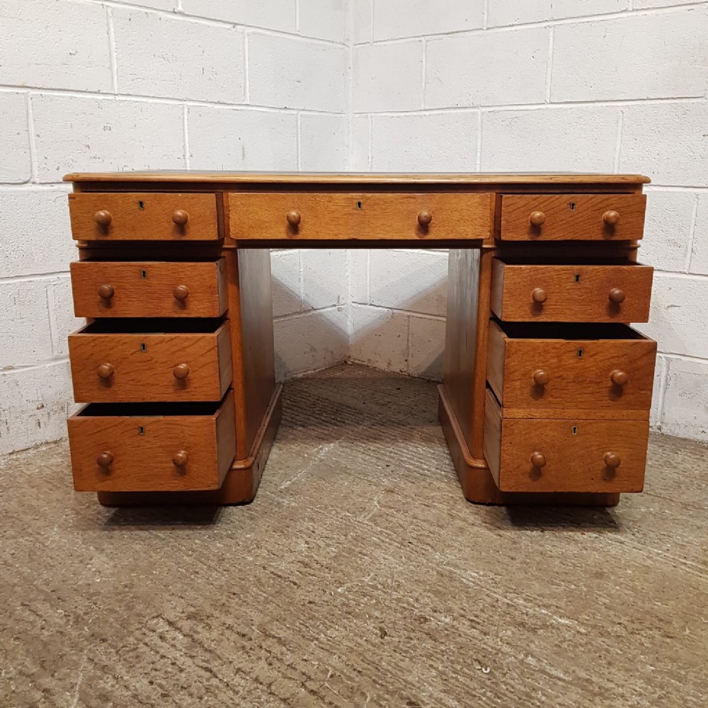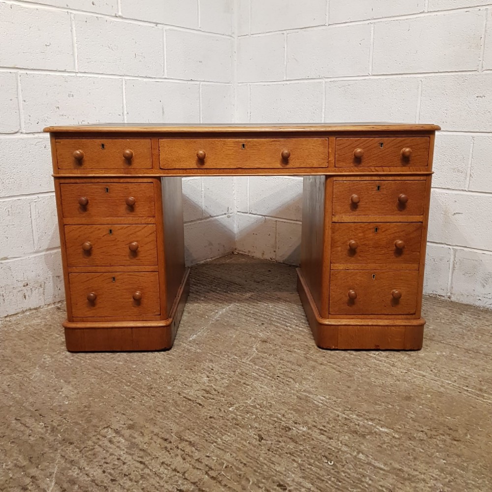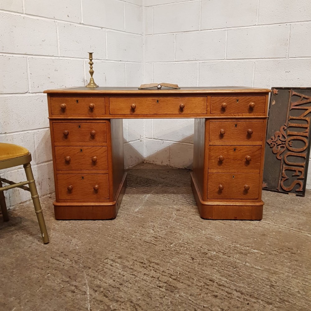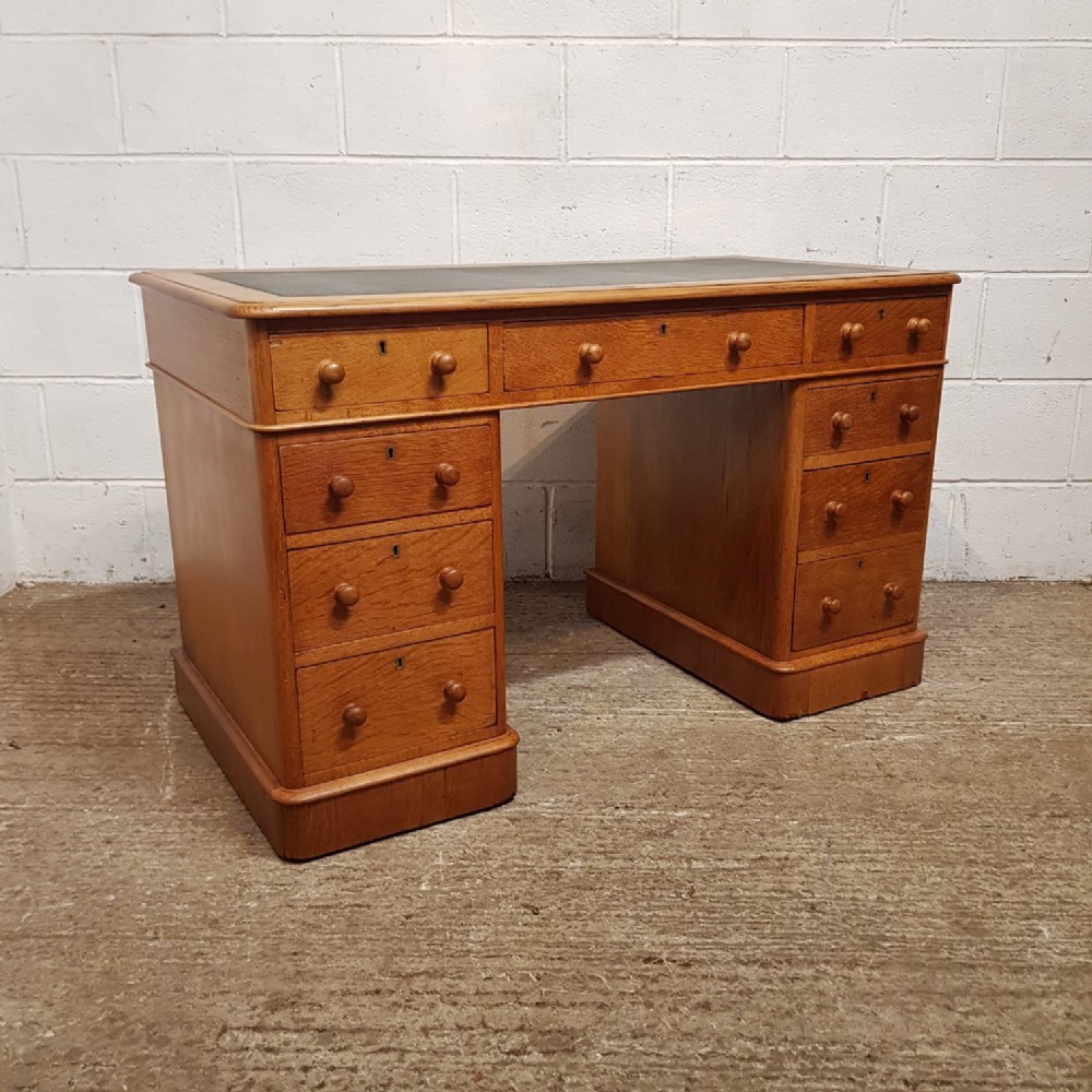 a victorian golden oak twin pedestal writing desk c1880