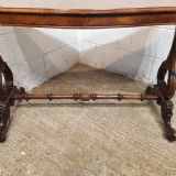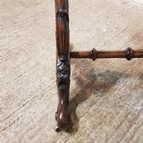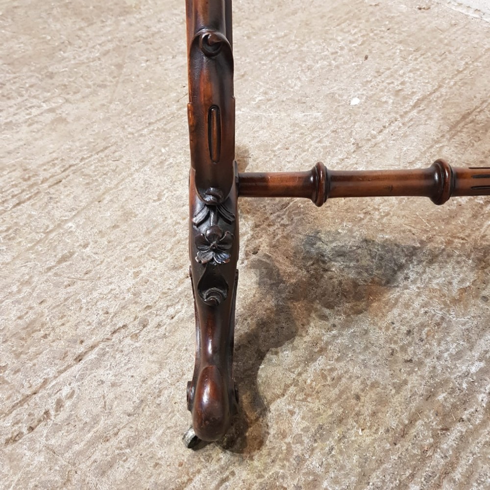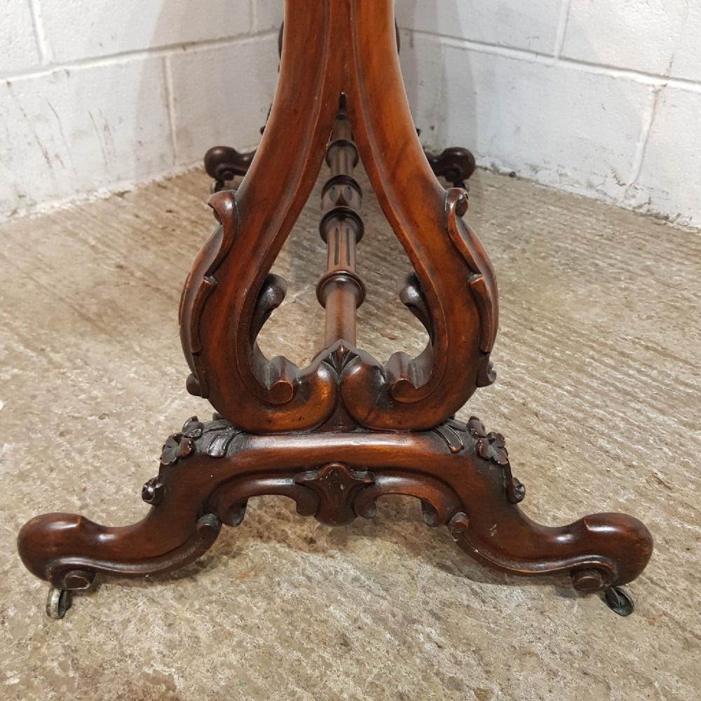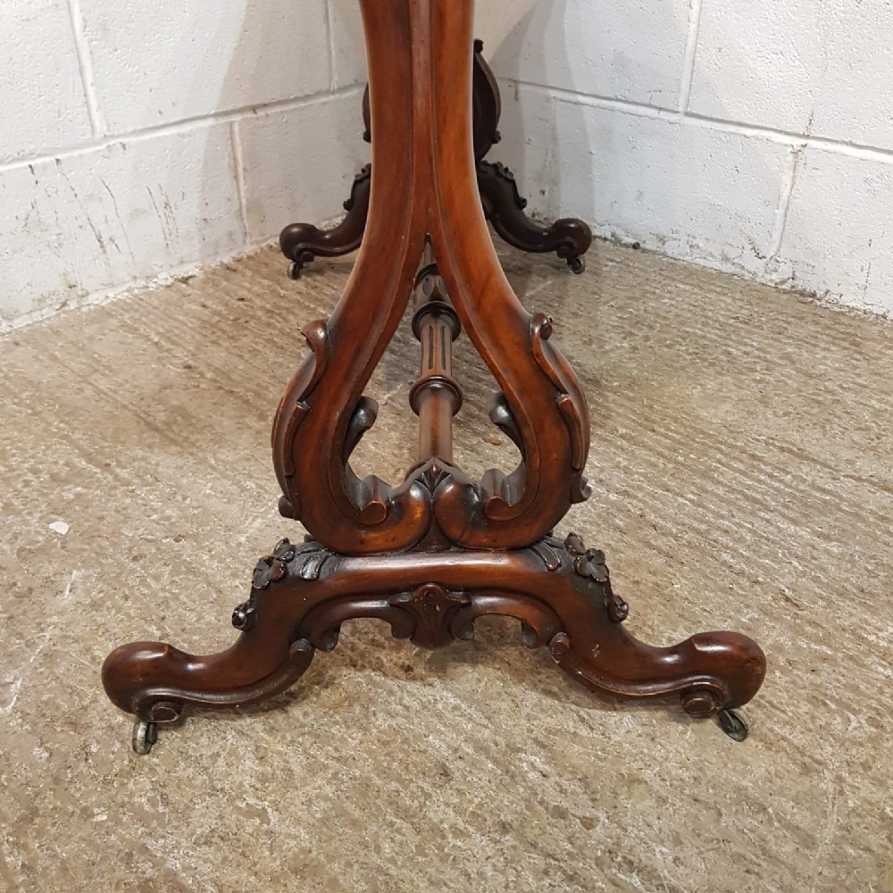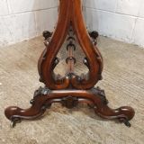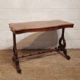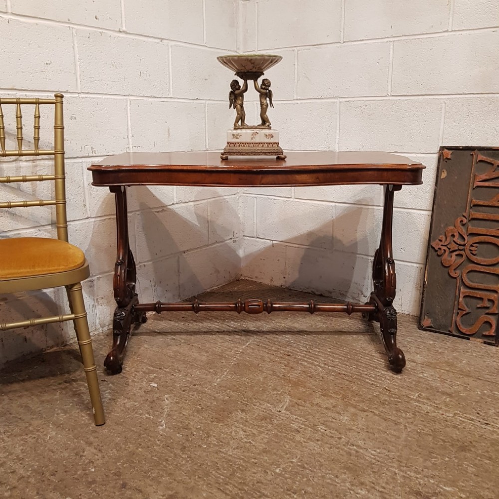 A Victorian Walnut and Burr Walnut side table and dating from around 1880. This original and beautiful side table has a shaped Burr Walnut top with a moulded edge and a Burr Walnut lip underneath with a moulded lip under this. It has a moulded carved and pierced support to each end on carved feet and castors with a turned stretcher between.