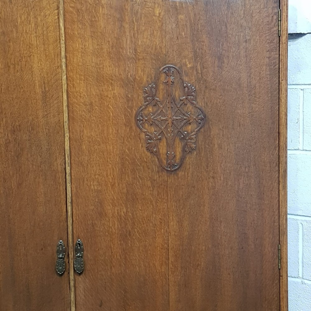 AN ANTIQUE OAK DOUBLE WARDROBE C1920