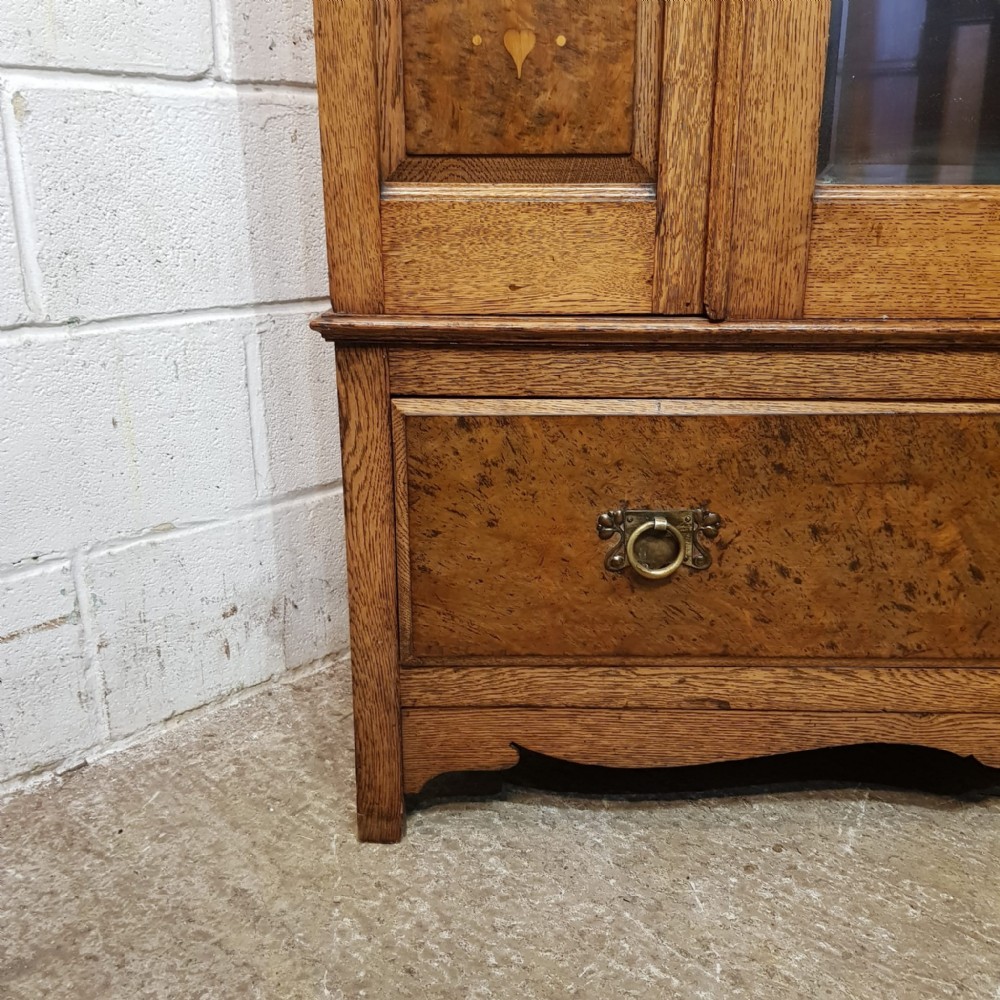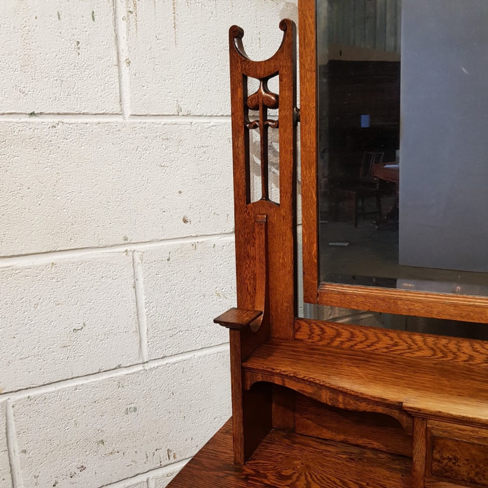 An Oak and Burr Walnut Arts & Crafts 3 piece bedroom suite and dating from around 1910. This superb bedroom suite consists of: