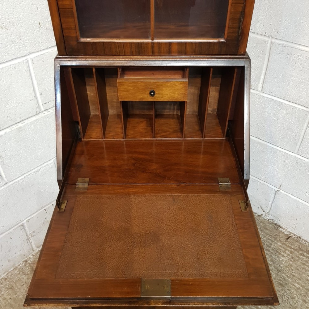 A BURR WALNUT TALL NARROW BEREAU BOOKCASE C1920