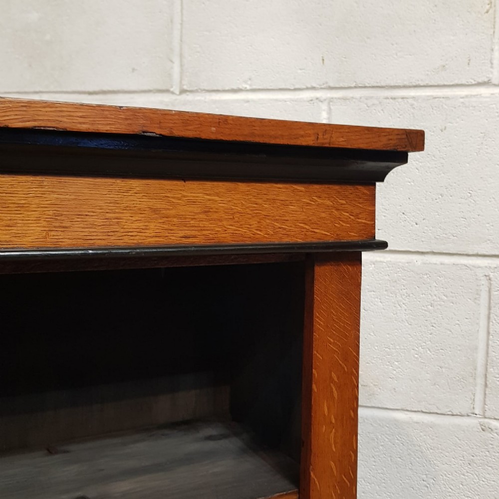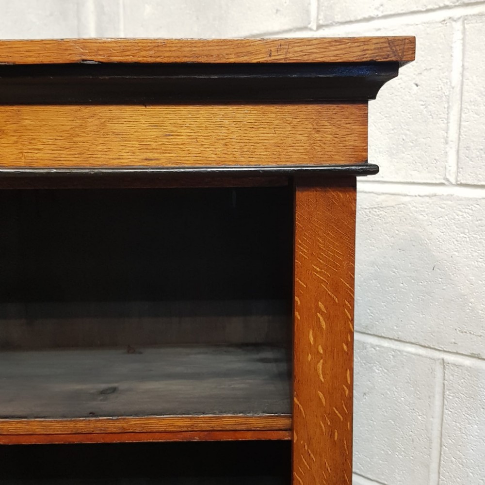 AN ANTIQUE SMALL MEDIUM OAK OPEN BOOKCASE C1900