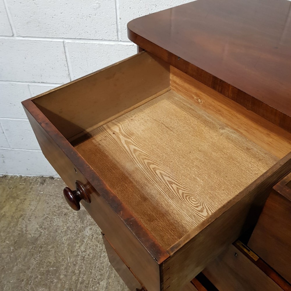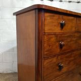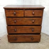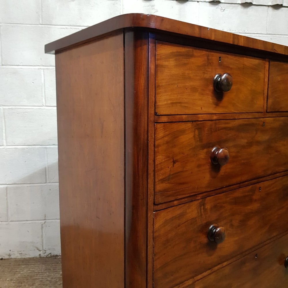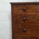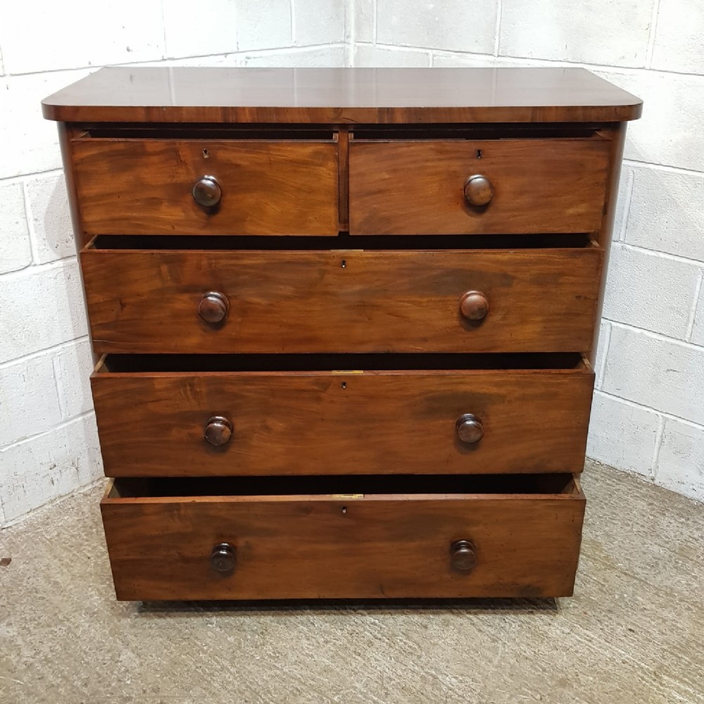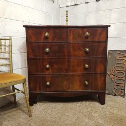 A Victorian Mahogany 4 height chest of drawers and dating from around 1860. This chest of drawers is of extremely good quality and has a square edge to the top with two short drawers over three long graduating drawers all of which are Oak lined with original knob handles. The chest has rounded corners and stands on a plinth and is of high quality.