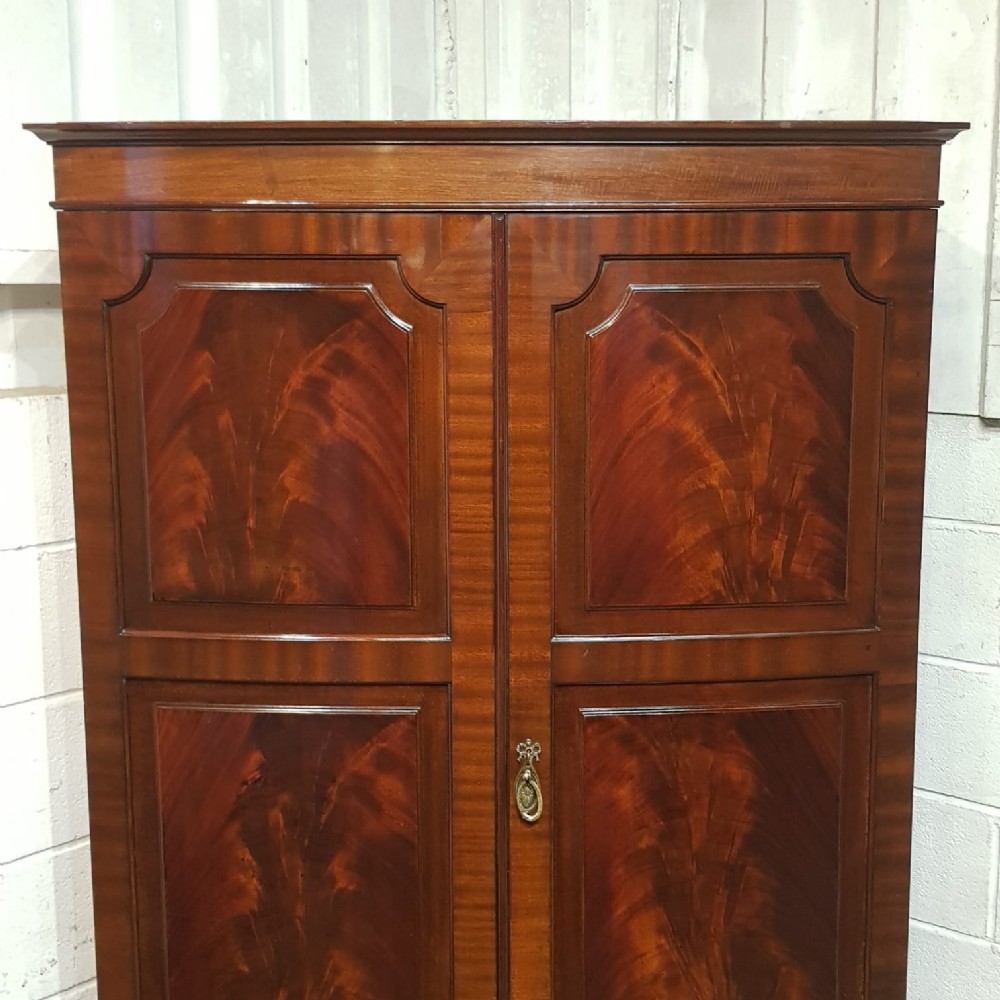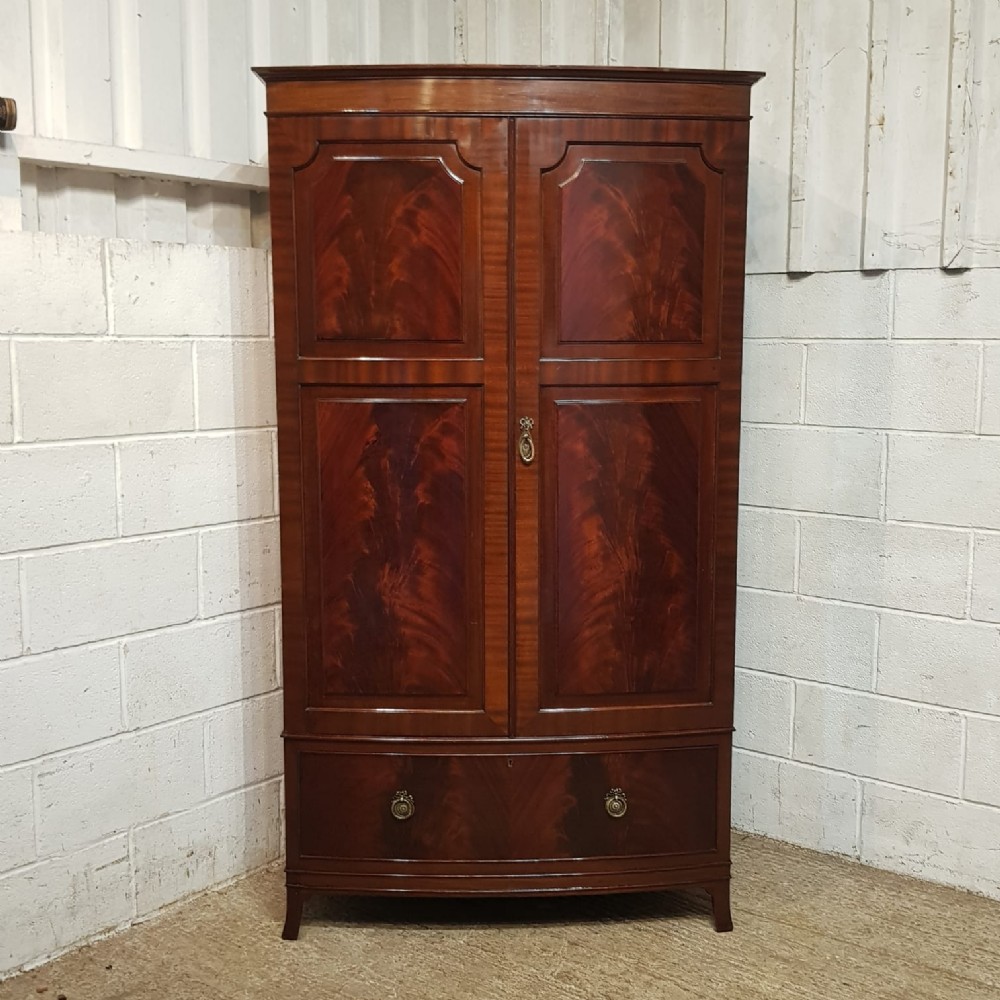 AN EDWARDIAN MAHOGANY BOW FRONTED WARDROBE C1900