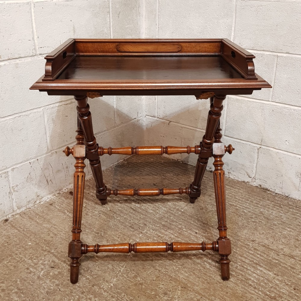 an antique walnut butlers tray on original stand c1890