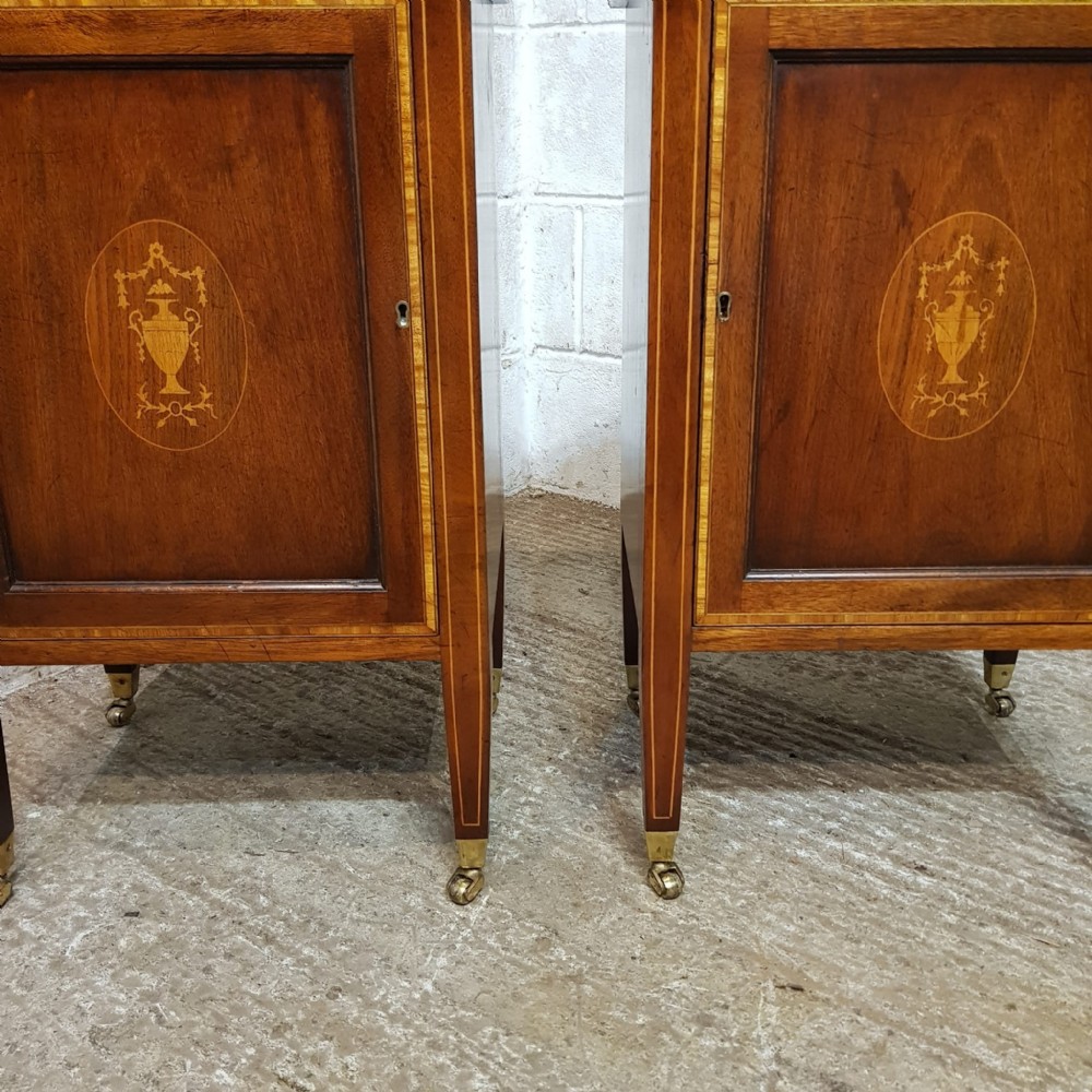 A PAIR OF EDWARDIAN MAHOGANY AND SATINWOOD BEDSIDE CABINETS C1900