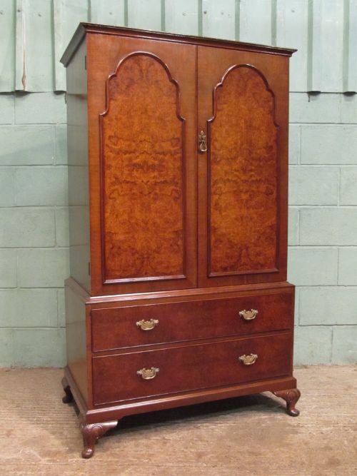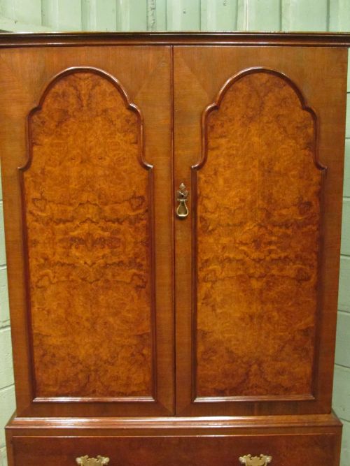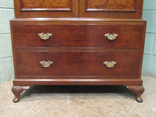 BURR WALNUT QUEEN ANNE LINEN CLOTHES PRESS C1920