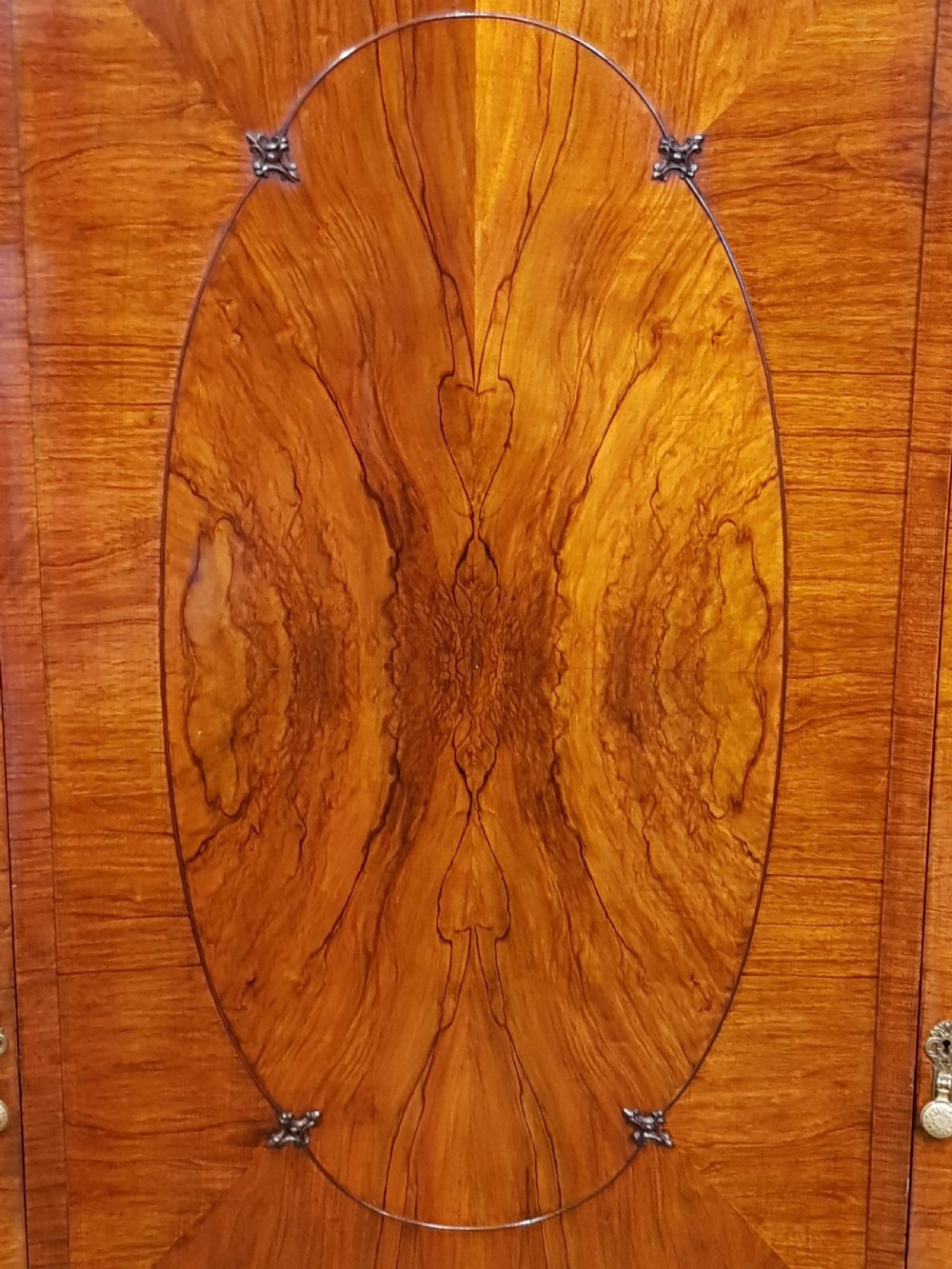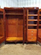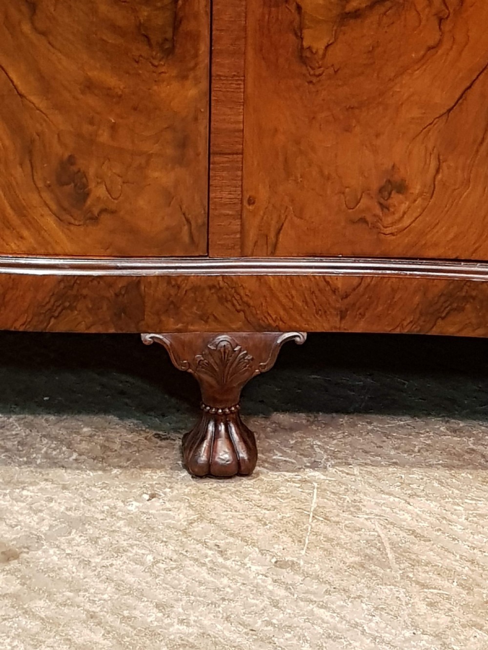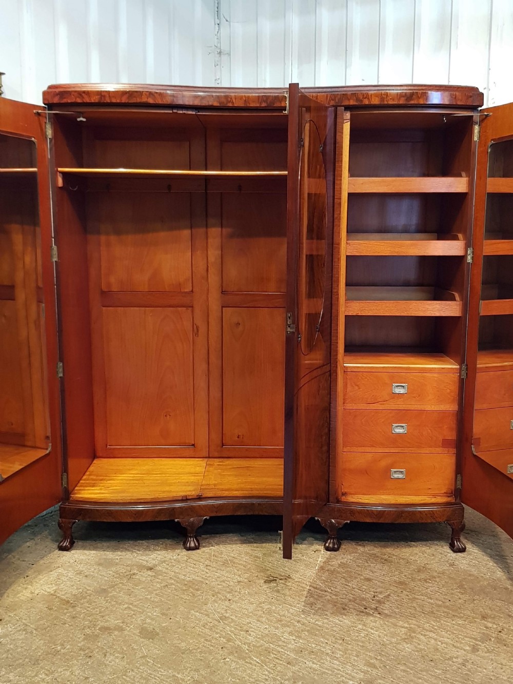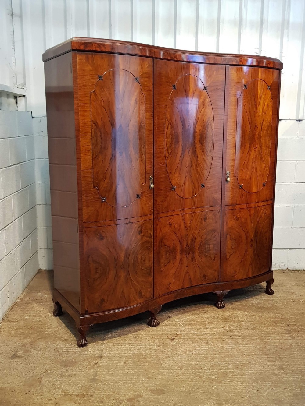 ANTIQUE EDWARDIAN BURR WALNUT SERPENTINE SHAPED TRIPLE WARDROBE C1900