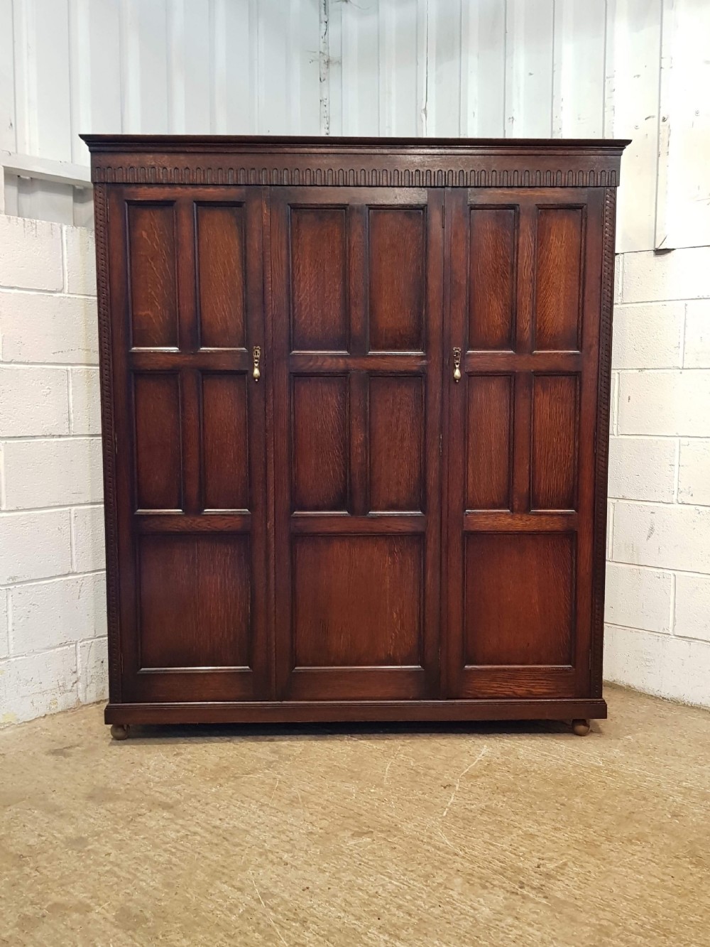 ANTIQUE EDWARDIAN OAK TRIPLE WARDROBE BY WARING & GILLOW C1900