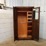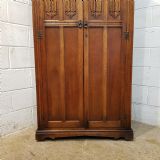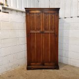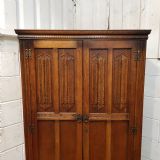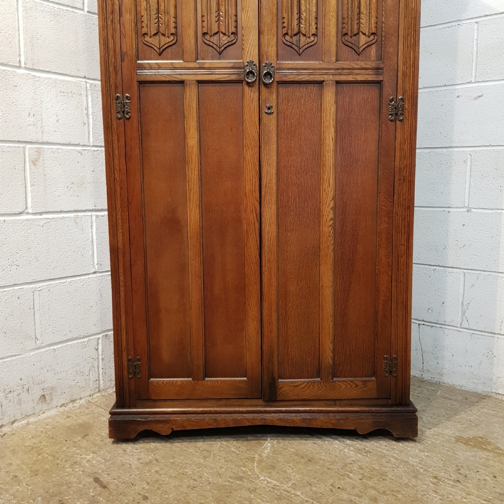 ANTIQUE CARVED OAK LINEN FOLD FITTED DOUBLE WARDROBE C1920
