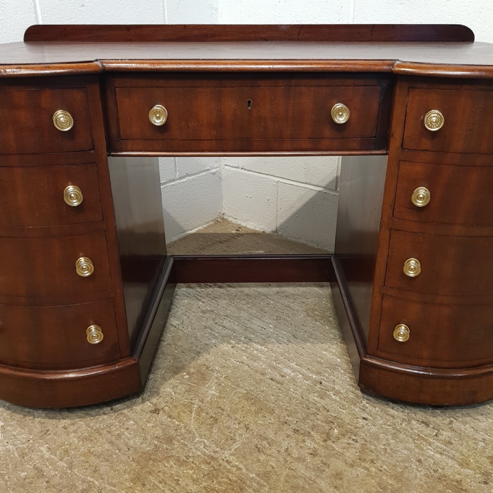 ANTIQUE EDWARDIAN MAHOGANY BOW FRONT PEDESTAL DESK C1900