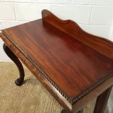 Antique William 1V Mahogany Console Table and dating from around 1830. Constructed from quality mahogany it has a shaped gallery back and gadrooned edge to the table top above two oak lined cushioned drawers. It is raised on cabriole legs scrolled carved with acanthus leaves and on a carved claw foot.
